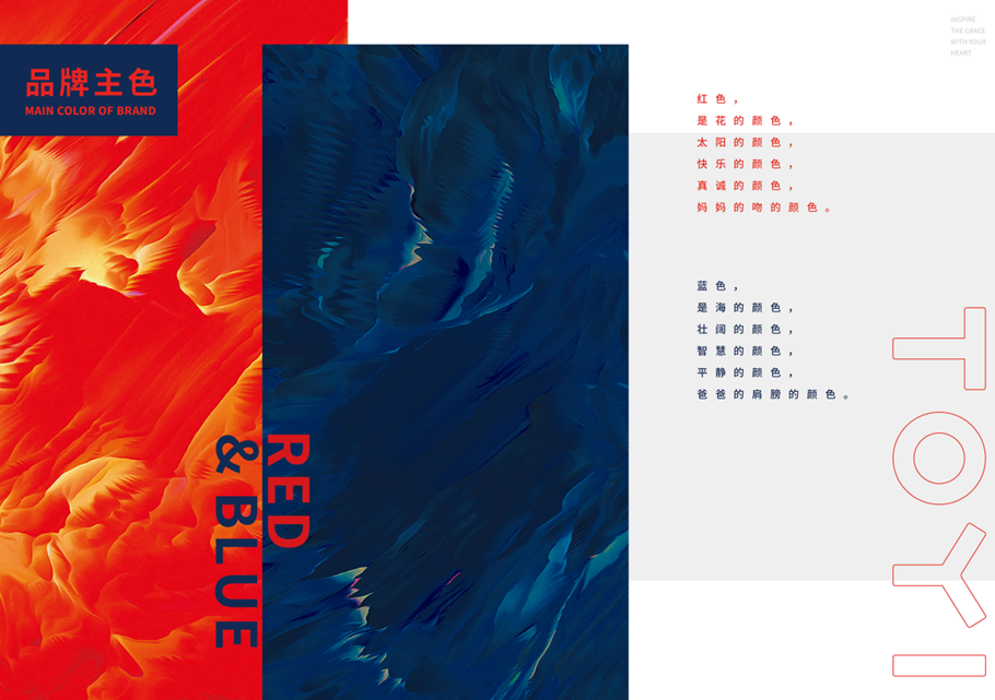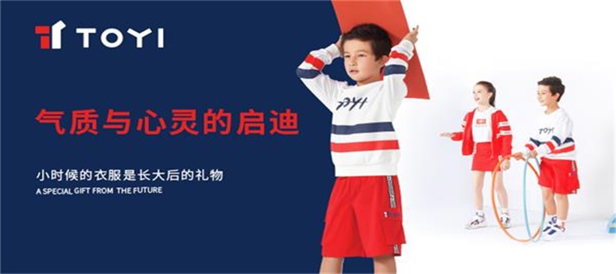 5.品牌色彩:品牌選擇了紅色和藍色作為主色調,這兩種顏色不僅鮮明而且易于辨識,再配上白色和黑色,形成了TOYI童裝獨特的品牌色彩體系。