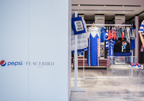 太平鳥品牌戰(zhàn)略3:跨界合作。如與百事可樂合作的聯(lián)名款時(shí)裝的首次發(fā)布。太平鳥女裝推出的emoji(表情符號(hào))系列,童裝Mini Peace的賽車總動(dòng)員系列、男裝的怪鴨系列、樂町的黃景瑜合作系列,都與年輕人喜歡的文化元素密切相關(guān)。